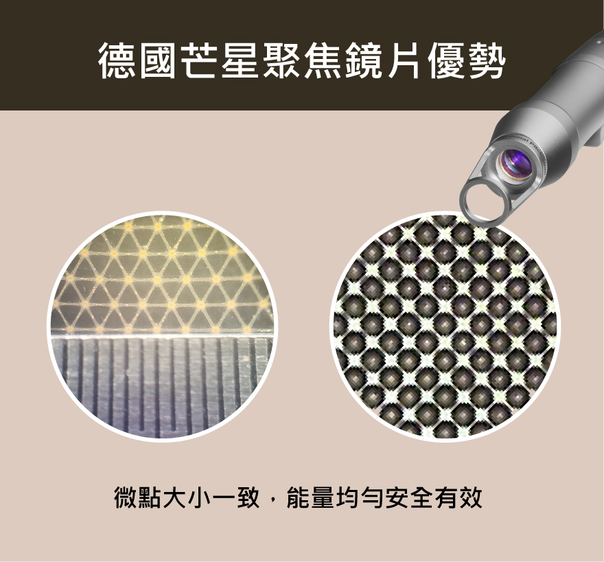 - 德國芒星聚焦鏡片適用於改善皺紋和痘痘疤痕、凹洞、毛孔粗大等