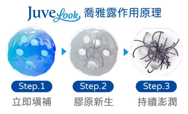 A:根據不同劑型,Juvelook喬雅露維持時間長達12-24個月,隨時間刺激膠原蛋白增生,呈現漸進式的改善。療程完成後即可感受玻尿酸填充性質的初步改善,隨著刺激膠原蛋白增生,約於2至4週後逐漸感受到更明顯的緊實與飽滿感。