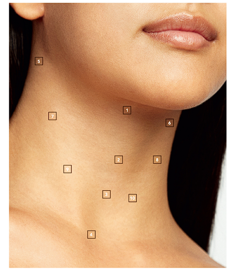 - 根據頸部特有的肌肉與血管走向,設計10個專屬點